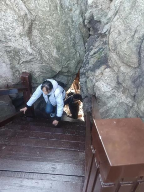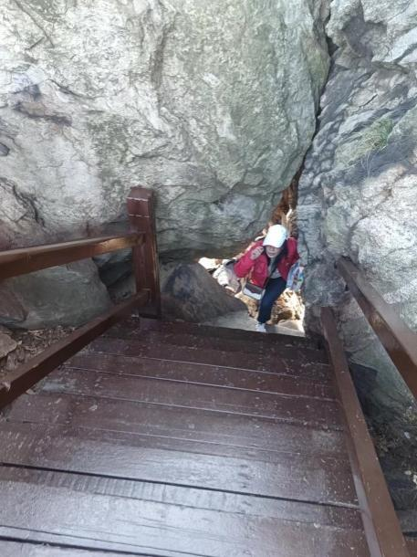 磁山看似不高,實際上對多數人來說也是一個挑戰,過了“一線天”,經過一段木棧道,以為快要登頂了,誰料峰回路轉,發現距離最高峰還有很長一段距離,堅持還是放棄?當然是堅持!雖然腳步沉重,但仍咬牙堅持,雖然衣服已被汗水打濕,但并不妨礙我們前進的步伐。只要確定目標,就必然有無限的動力!